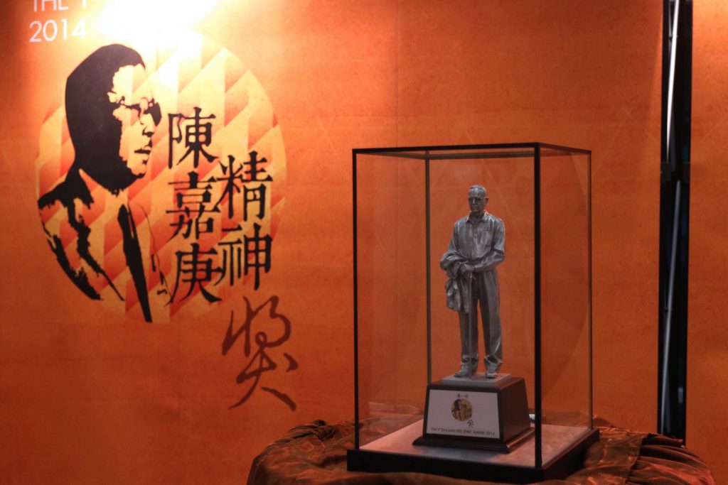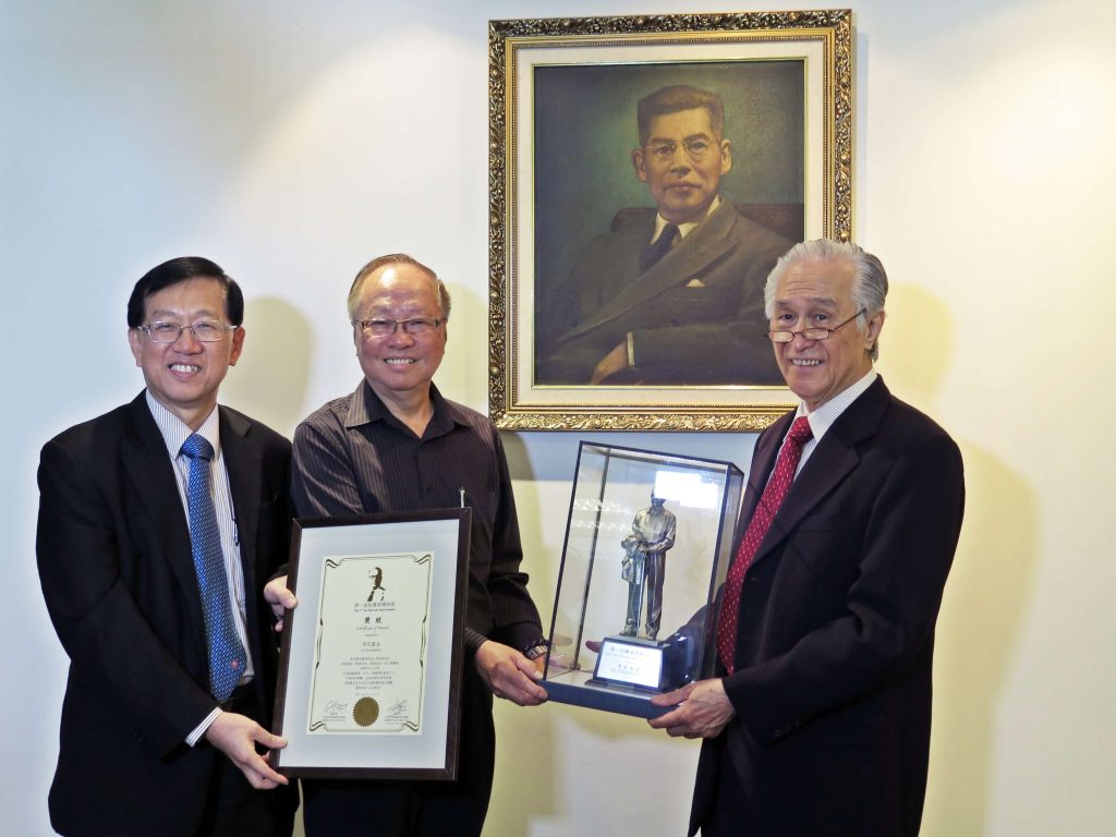 李氏基金秉承李光前不图名利、不求回报的作风,故无代表出席陈嘉庚精神奖颁奖典礼。马来西亚陈嘉庚基金发起人陈凯希 (右)、陈友信(左)代表转交精神奖锡制陈嘉庚像奖座、奖状予李氏基金代表张顺发(中)。